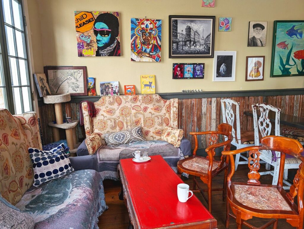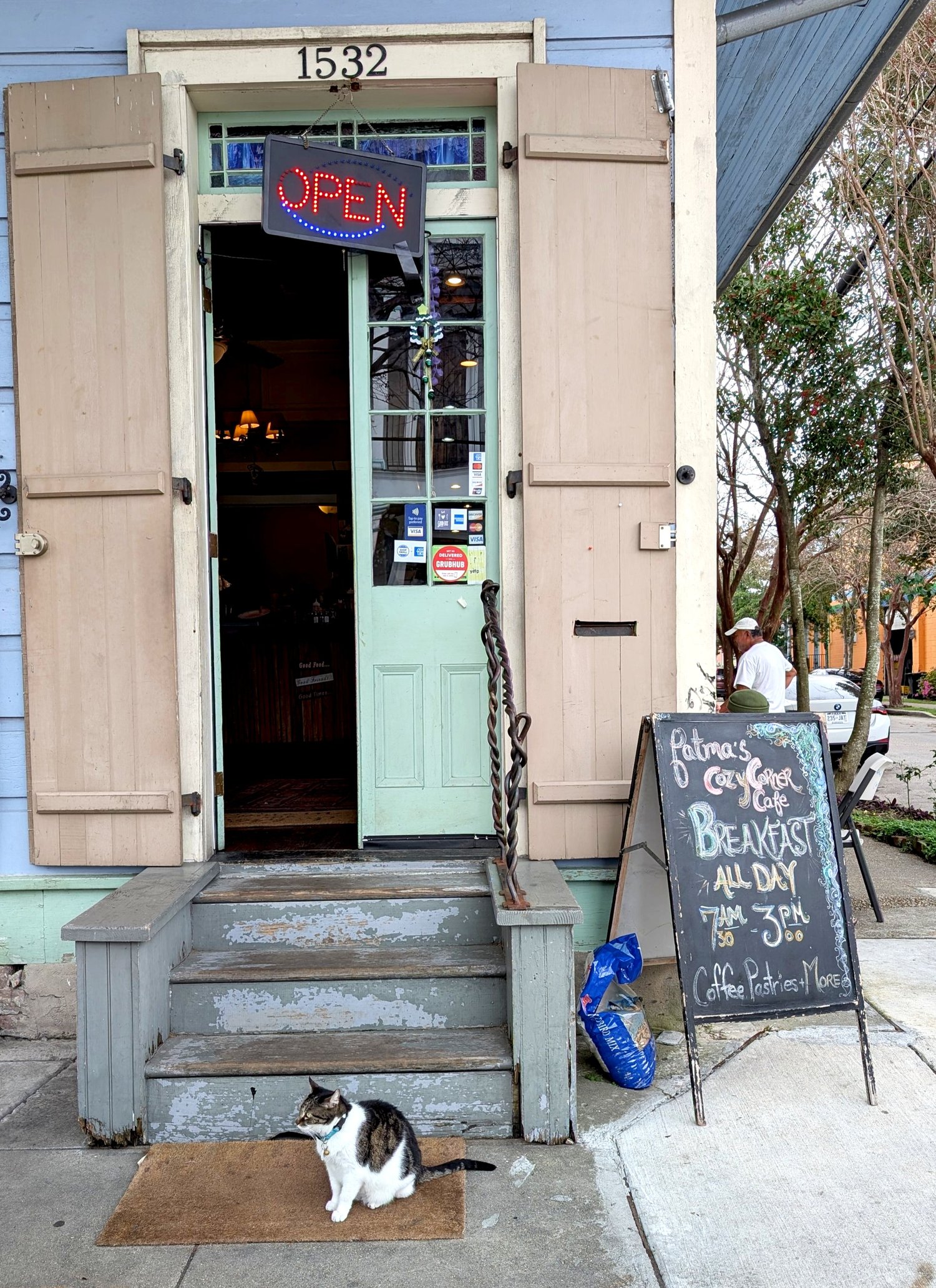 Visiting Fatma’s Cozy Corner in the Tremé is a lot like an open invitation to hang out at your best friend’s house. Comfy, high-backed, paisley-upholstered couches are tucked next to the front window, an upright piano stands stolid, waiting patiently to be played in a rear dining room, and a proud tabby cat guards the stoop where tall French doors stand open to the corner of North Robertson and Ursulines Avenue.