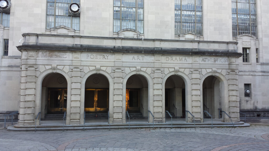Like any derelict building, the grand Municipal Auditorium with its marble floors and bronze doors has become a target for squatters and vandalism. Vagrants haunt the building’s alcoves seeking shelter for a night. Miscreants climb security fences and pull down boarded-up entrances. They recklessly damage the 95-year-old property, endangering themselves in the process.